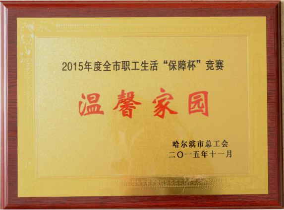 亚泰建材哈尔滨公司荣获2015年度全市职工生活“保障杯”竞赛“温馨家园”光荣称号,李崇彪等三名同志被评为“保障杯”竞赛“先进个人”光荣称号。这一荣誉,充分体现了公司关心职工生活,维护职工权益。公司通过改善就餐条件、居住条件、文体活动条件等多方面工作,进一步完善职工之间建设工作,建立职工困难援助机制、工伤救援机制、互助保障机制、职工体检和疗休养制度,为广大员工,尤其是困难员工和女员工提供了温馨舒适的工作环境,真正地成为广大员工的“温馨家园”。